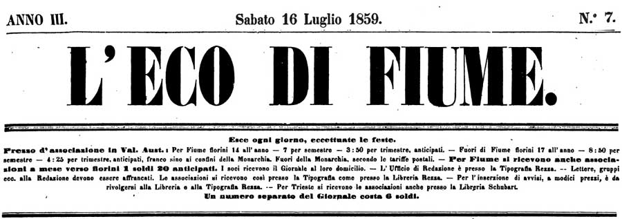 Di particolare interesse è l’emeroteca annessa alla Biblioteca, che conserva tra gli altri alcuni importanti periodici pubblicati nella città di Fiume, oltre a ritagli di giornali circolanti a Fiume provenienti dall’Italia da Budapest, Vienna, Parigi, Zagabria e Stati Uniti. Qui di sotto sono elencate alcune testate storiche stampate a Fiume.