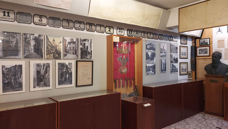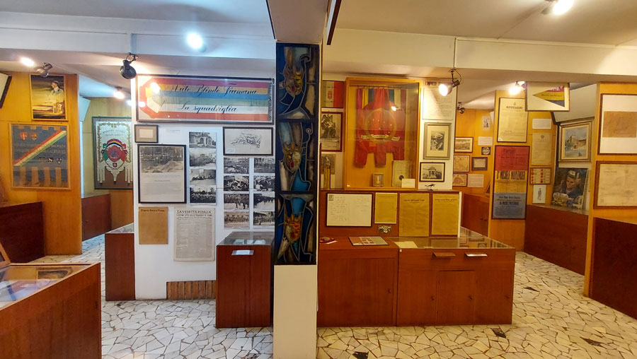 Il museo è disposto nella sala del piano inferiore su una superficie di 250 mq. ca. e ruota intorno a un sacrario centrale a ricordo dei giuliano-dalmati caduti per la patria italiana. Il percorso di visita inizia con un’ampia panoramica documentale sull’esodo dalle terre adriatiche, procede con cimeli e documenti originali che illustrano ampiamente la storia fiumana dalle origini romane al secondo conflitto mondiale, gli aspetti urbanistici, monumentali, associativi, scolastici, amministrativi, religiosi e culturali della città di Fiume e del suo territorio ricollegabili all’identità di carattere italiano.