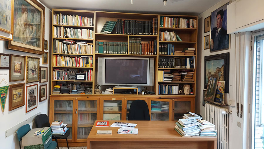 Al secondo piano vi sono l’archivio e la biblioteca, su una superficie sempre di 250 mq. ca. L’archivio è suddiviso in due settori: uno destinato a sala riunioni con mezzi audiovisivi offre trenta posti a sedere e ospita un’ampia panoramica d’opere realizzate da artisti fiumani dal 1700 ai giorni nostri, nell’altro sono disposte postazioni informatiche, l’ufficio amministrativo della società e del museo.